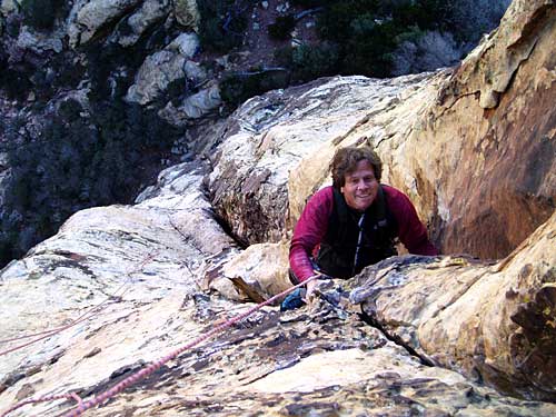 Here is Bill on the same pitch all cheery as he has just realized that he is about 12 feet away from a belay beer.