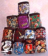 We feature two chalk bags that have the wildest patterns in any arena. Think of the craziest Hawaiian shirt ever witnessed, exotic pelts, maybe brash prints --- sometimes even Elvis. Now, what if you had these on your chalk bag? You'd be stoked, right? Well here you go --- The "FIST" model is 7" tall with a 5.5" bottom, and the "PALM" model is 5" tall with a 5" bottom. Both bags feature a "best of both worlds" stay open rim that has non-kinking cable sewn in with numerous rows of stitching. Also features a collar closure plus there is a toothbrush holder for crag maintenance or holding a topo. An easy way to order is to ask for "wild" or "mild" and then pick a color theme.$25.00 ea.