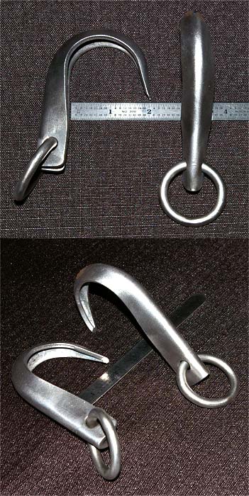 These super strong hooks are made with the wall climber in mind. All Fish Hooks are made from 4130 Cro-Moly steel and hot formed to a diameter of 2 inches. The tip is hand ground to a chisel-like point that is 3/8 of an inch wide. Final heat treating makes this hook strong enough to be left as protection on the most demanding pitches. We also offer a larger version of the standard FISH Hook, known as the "CAPTAIN HOOK". The overall diameter of the "Captain Hook" is 3 inches, from tip to spine. Don't get caught short out there on a horror show, take both sizes to be sure. Sold Out