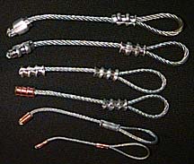 The FISH Heads and Circle Heads we manufacture are made with Nicopress sleeves and machines to ensure the quality of the swage. The smaller sizes (#1- 3) have copper heads, and the larger sizes (#4- 6) have aluminum heads to give them extra holding power. The circle heads are for horizontal placements or roof seams. All sizes are now available as "Double Heads",($3.25 each) plus we've added some super sticky #2 Aluminum heads to the line. Ask for your favorites! $3.00ea.