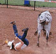 Back in the chute, this time on a brahma called "Ball Buster" I nestled in and told the boys to let `er rip. This ride was about 3 hours long, and ended with another head plant. "Best 3 second ride I ever seen Hollywood," said the chute boss.