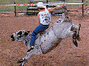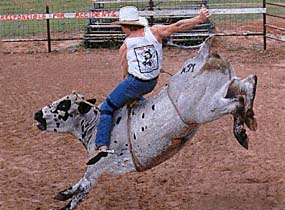 The boys got a fresh bull in the chute that was called "Weenie Roast" that had only one horn. Foolishly I asked where the other horn was, "In the last riders ass," was the deadpan reply from the bulls owner.