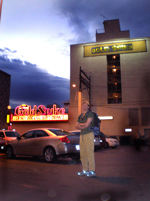 Next day after climbing I hit the tables at Binions. IF it wasn't for the crack dealer that played every hand I would have hit the felt that night. pocket aces flopped the set, rivered the quads - crack dealer dood paid me to the end. I got a T-shirt for that - KickAss Ended up down $15 that night - not bad considering I drank 13 Sam Adams and a few shots of Crown. Stumbled back to the Ebola infested van at 4:30 AM. No dice on climbing that day. I got up around 2:30 PM feeling like a truck hit me - not sure one didn't.
